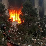 (Photo: Service members of pro-Russian troops, including fighters of the Chechen special forces unit, stand in front of the destroyed administration building of Azovstal Iron and Steel Works during Ukraine-Russia conflict in the southern port city of Mariupol, Ukraine April 21, 2022. Credit: Reuters/Chingis Kondarov)