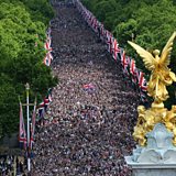 (Photo: Members of the public fill The Mall before a special flypast following the Trooping the Colour ceremony at Horse Guards Parade, central London, as the Queen celebrates her official birthday, on day one of the Platinum Jubilee celebrations. Credit: Paul Ellis/PA Wire)