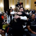 (Photo: U.S. Capitol Police Officer Caroline Edwards embraces Sandra Garza, partner of Brian Sicknick next to Serena Liebengood, widow of Capitol Police officer Howie Liebengood, after her testimony during the hearing of the U.S. House Select Committee to Investigate the January 6 Attack on the United States Capitol on Capitol Hill in Washington, U.S., June 9, 2022. Credit: Jonathan Ernst/Reuters)