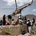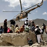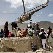 (Photo: A Taliban helicopter takes off after bringing aid to the site of an earthquake in Gayan, Afghanistan, June 23, 2022. Credit: Ali Khara TPX IMAGES OF THE DAY/REUTERS)