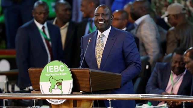 Deputy President William Ruto has been declared the winner of Kenya's presidential election amid dramatic scenes. He narrowly beat his rival, Raila Odinga, taking 50.5% of the vote, according to the official results. The announcement was delayed amid scuffles and allegations of vote-rigging by Mr Odinga's campaign. We'll speak to our correspondents for the latest news and speak to people in Kenya.
