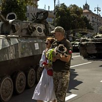 We hear from three women who have family members - one a prisoner of war - serving on the frontline. We also play more messages from Ukrainians about how the past six months have been for them and where they found themselves now.