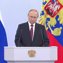 (Photo: President Putin at the Kremlin where he signed documents to annex occupied parts of four regions of Ukraine. Credit: BBC)