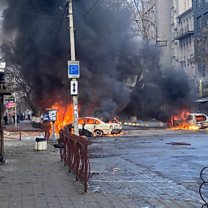 (Photo: Cars burn on a street after a Russian military strike, amid Russia's attack of Ukraine, in Kherson, Ukraine December 24, 2022. Credit: Ukrainian Presidential Press Service/Handout via REUTERS)