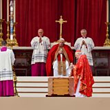 (Photo: Cardinal Giovanni Battista Re blesses the coffin of former Pope Benedict during his funeral as Pope Francis presides over the ceremonies, in St. Peter's Square at the Vatican, January 5, 2023. Credit: Kai Pfaffenbach/Reuters)