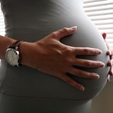 (Photo: A woman holding her stomach, eight months into her pregnancy. Credit: Katie Collins/PA Wire)