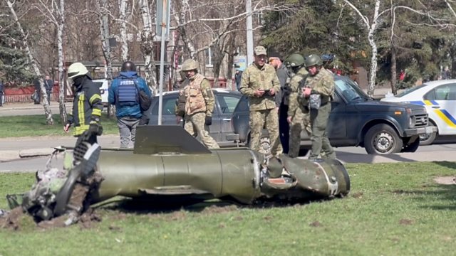 (Picture: Remains of a missile Kramatorsk railway station. Credit: Reuters/Handout)