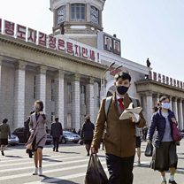 (Image: People wearing protective face masks walk in front of Pyongyang Station. Credit: Reuters)