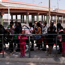(Image: Asylum-seekers wait outside the Center for Integral Attention to Migrants (CAIM) to request information about their asylum in the United States. Credit: REUTERS)