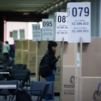(Image: Workers of Colombia"s national registry prepare the Corferias fair compund for the 2022 Presidential Elections in Colombia. Credit: Sebastian Barros/NurPhoto/REX/Shutterstock)