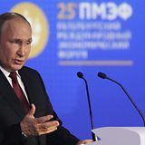 (Image: Russian President Vladimir Putin speaks at the plenary session during the Saint Petersburg Economic Forum. Credit: Getty Images)