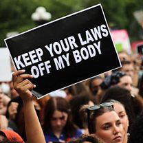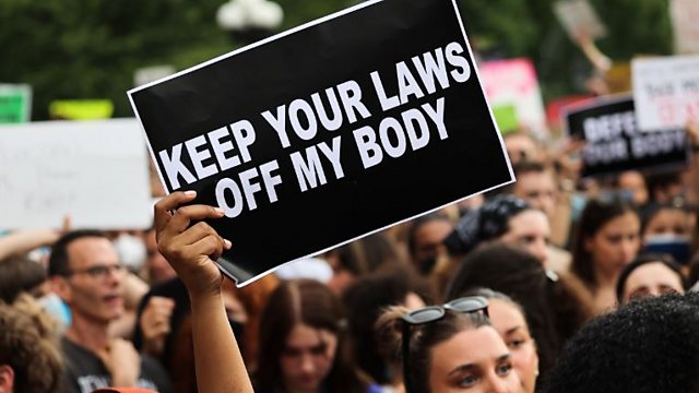 (Photo shows a protester holding a sign reading "Get your laws off my body". Credit: Tayfun Coskun/Anadolu Agency via Getty Images)