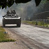 (Image: An armoured vehicle on the main road to Lysychansk, Ukraine. Credit: BAGUS SARAGIH/AFP via Getty Images)