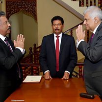 (Picture: Sri Lankan Prime Minister Ranil Wickremesinghe (R) taking the oath as interim president of Sri Lanka before Chief Justice Jayantha Jayasuriya (L). Credit: Shutterstock)