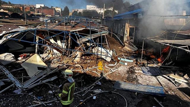 (Picture: Aftermath of a Russian missile strike in Bakhmut, Donetsk region, Ukraine. Credit: Press service of the State Emergency Service of Ukraine/Handout via REUTERS)