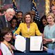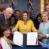 (Image: House Democrats pose for photos after Speaker of the House Nancy Pelosi signed the Inflation Reduction Act after the House passed the legislation. Credit: Photo by Drew Angerer/Getty Images)