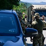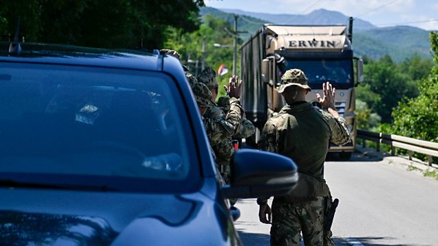 (Image: NATO soldiers greet a truck driver near the town of Zubin Potok. Credit: ARMEND NIMANI/AFP via Getty Images)