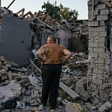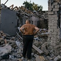 (Image: A man looks at his destroyed house following a missile strike as Ukrainian forces begin a counter-attack to retake the southern city of Kherson, Credit: DIMITAR DILKOFF/AFP via Getty Images)