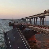 Photo: Parts of Crimea bridge collapse following fire, Kerch Strait, Ukraine. Credit: Ukraine Security Service (SSU) via EPA)