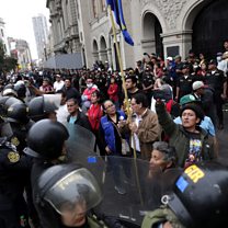 (Photo: Protesters opposed to the government take to the streets during the pro-government "March for Peace", in Lima, Peru. CREDIT: EPA/Bienvenido Velasco)