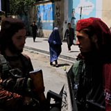 (Photo: Taliban stand guard outside Kabul University in Kabul, Afghanistan. CREDIT: EPA/STRINGER)