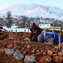 (Picture: People mourn their relatives at a mass grave area following a major earthquake in Baris village near Elbistan district of Kahramanmaras, southeastern Turkey, 10 February 2023. Over 22,000 people were killed and thousands more were injured after two major earthquakes struck southern Turkey and northern Syria on 06 February. Authorities fear the death toll will keep climbing as rescuers look for survivors across the region. Credit: Photo by SEDAT SUNA/EPA-EFE/REX/Shutterstock)