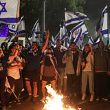 (Photo: Israeli protesters chant in a demonstration against Israeli Prime Minister Benjamin Netanyahu and his nationalist coalition government's plan for judicial overhaul, in Tel Aviv, Israel, March 27, 2023. Credit: Reuters/Itai Ron)