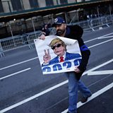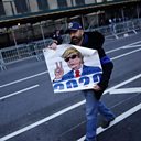 (Image: A Trump supporter carries a sign outside a New York court CREDIT: EPA)