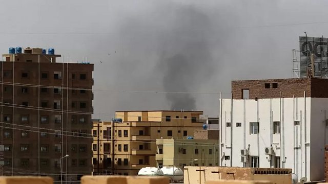 (Photo: smoke rises from the buildings in Khartoum. Credit: AFP)