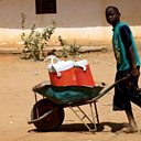 (IMAGE:A person pushes a wheelbarrow with water containers during clashes between the RSFand the army in Khartoum North, April 22, 2023 CREDIT: REUTERS/ Mohamed Nureldin Abdallah/File Photo)