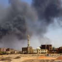 (Image: A man walks while smoke rises above buildings after aerial bombardment, during clashes between the paramilitary Rapid Support Forces and the army in Khartoum, Sudan, on 1 May 2023. Credit: Nureldin Abdallah/Reuters)