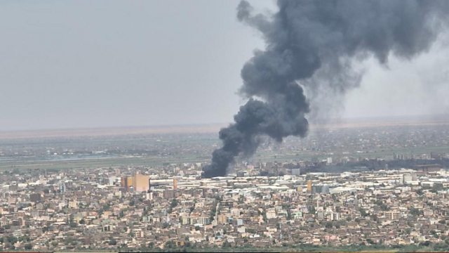 (Photo shows black smoke rising above buildings in Khartoum. CREDIT: Reuters)