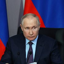 (Picture: Russian President Vladimir Putin chairs a meeting on the development of unmanned aircraft, at the Rudnyovo industrial park in Moscow, Russia April 27, 2023. Credit: Sputnik/Mikhail Klimentyev/Kremlin)