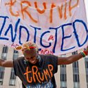 (Photo: A woman holds a banner in front of the federal courthouse where former US President and Republican presidential candidate Donald Trump is expected later this week. US August 1, 2023. Credit: REUTERS/Jonathan Ernst)