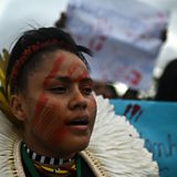 (Image: Indigenous people participate in a march for land demarcation, and against violence on indigenous lands and agribusiness, one day before the summit of the Amazon countries. Credit: Photo by Andre Borges/EPA-EFE/REX/Shutterstock)