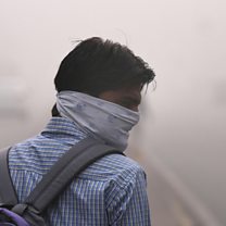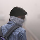 (IMAGE: An Indian man with his face covered with a cloth walks amid heavy smog in New Delhi, India CREDIT: EPA-EFE/RAJAT GUPTA)