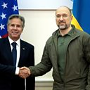 (Image: US Secretary of State Antony Blinken and Ukraine's Prime Minister Denys Shmyhal shake hands prior to their meeting at the Prime Minister's Office in Kyiv, Ukraine, on 6 September 2023. Credit: REUTERS/SMIALOWSKI)