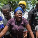 (Picture: Residents gather outside a military base demanding help after fleeing Carrefour-Feuilles, Port-au-Prince, Haiti. Credit: Reuters)