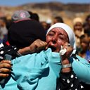 (Photo shows three mourners crying during a funeral in Moulay Brahim, Morocco. Credit: Reuters)