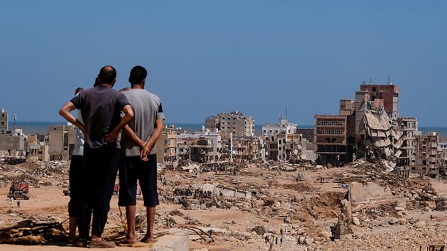 (Picture: A view shows people looking at the damaged areas, in the aftermath of the floods in Derna, Libya September 14, 2023. Credit: REUTERS/Esam Omran Al-Fetori)