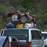 (Image: Vehicles carrying refugees from Nagorno-Karabakh, a region inhabited by ethnic Armenians, queue on the road leading towards the Armenian border, in Nagorno-Karabakh, September 26, 2023. Credit: Reuters/David Ghahramanyan)