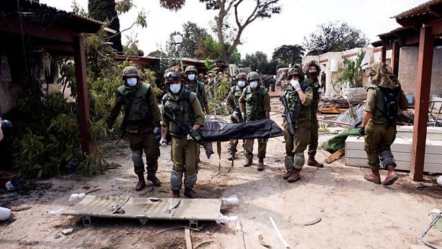Hamas militants launched a surprise attack on the Kfar Aza kibbutz by the Gaza border. We speak to a survivor of the Israeli Supernova festival and a Gaza resident tells us how the besieged residents of the Gaza strip are facing shelling and increased shortages of basic goods.