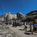 (Photo: People leave Gaza City after the Israeli Defence Force called for an evacuation ahead of an expected ground invasion, 13 October, 2023. Credit: Mohammed Saber/EPA)