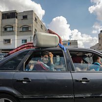 (Picture: Residents of Gaza City continue to evacuate. Credit: Mohammed Saber via EPA-EFE/REX/Shutterstock)
