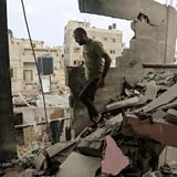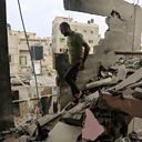 (Photo: A man searches through the rubble of a destroyed building. Credit: Getty Images)
