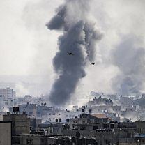 (IMAGE: Smoke billows from residential buildings after Israeli air strikes in the Tel al-Hawa neighbourhood in Gaza City, 30 October 2023 / CREDIT: EPA / Mohammed Saber)