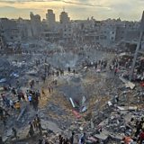 (Photo: Palestinians search for casualties at the site of Israeli strikes on houses in Jabalia refugee camp in the northern Gaza Strip. Credit: Reuters / Anas al-Shareef)