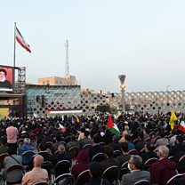 (Photo: people listen to Hezbollah leader Hassan Nasrallah's speech, November 2023. Credit: West Asia News Agency via Reuters.)