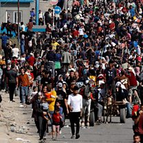 (Photo: Palestinians fleeing north Gaza walk towards the south, amid the ongoing conflict between Israel and Palestinian Islamist group Hamas, in the central Gaza Strip. Credit: Reuters/Mohammed Salem)