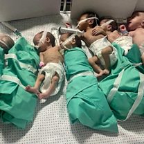 (Photo: Newborns are placed on bed after being taken off incubators in Gaza's Al Shifa after power outage. Credit: image obtained via Reuters).